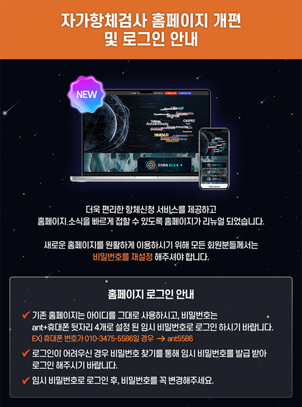 * 찾으시는 항체가 없거나 검사 항체 항목들 중 특정 항체들만 검사를 원하실 경우 이메일 info@advancednt.co.kr 으로 연락주시면 가능 여부를 말씀드립니다.