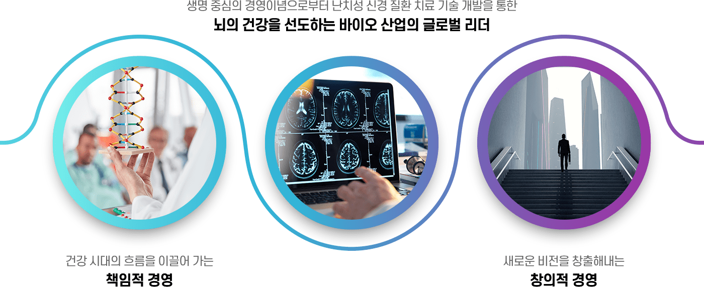 생명 중심의 경영이념으로부터 난치성 신경 질환 치료 기술 개발을 통한 뇌의 건강을 선도하는 바이오 산업의 글로벌 리더