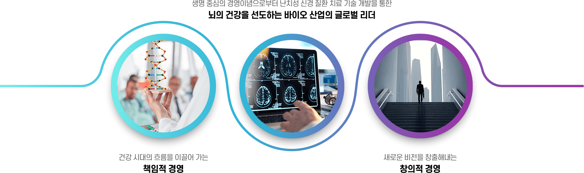 생명 중심의 경영이념으로부터 난치성 신경 질환 치료 기술 개발을 통한 뇌의 건강을 선도하는 바이오 산업의 글로벌 리더